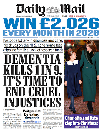 Ted Verity, editor-in-chief, Daily Mail, said: “Dementia is the UK’s biggest killer, which is why we are delighted to partner with the Alzheimer’s Society to raise awareness and bring hope to every family affected.”